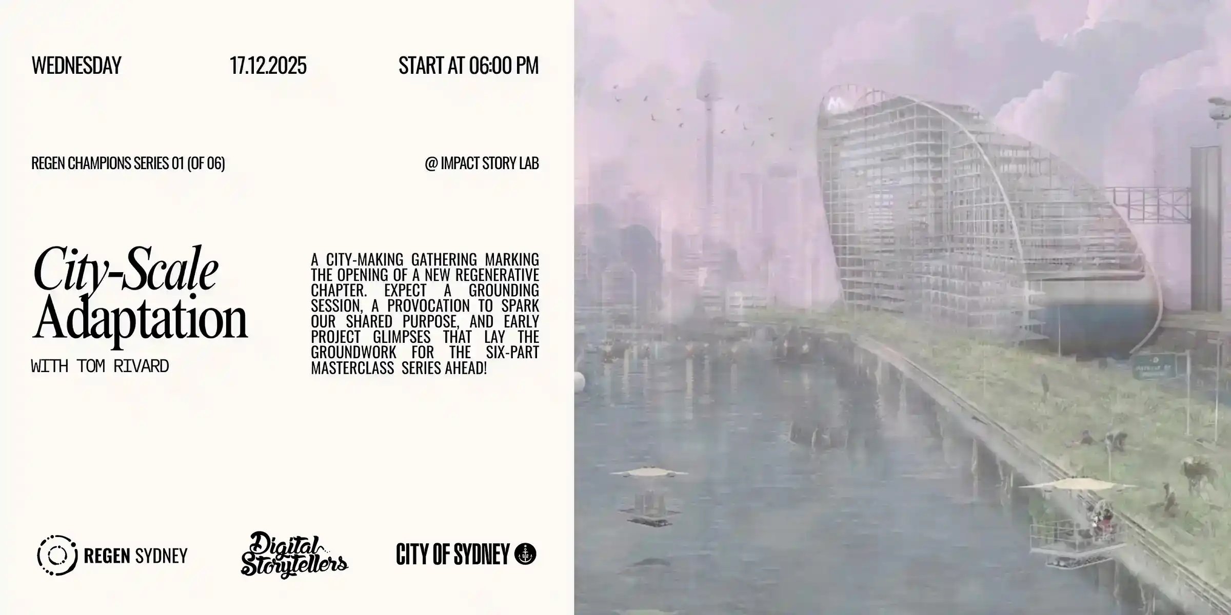 Our inaugural event, City-Scale Adaptation, led by futurist and urbanist Tom Rivard, opens the series and sets the foundation for the work ahead. This session is open to the public, with the option to continue into the full six-part masterclass as part of the first Regen Champions cohort.